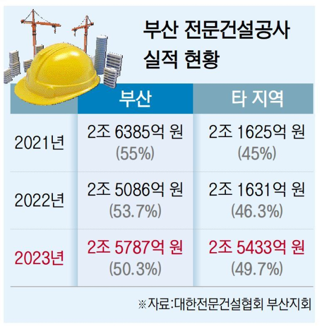 부산을 포함한 전국 대부분 지역이 극심한 부동산 정체를 겪고 있습니다. 최근 부산지역 전문 건설업체 2곳이 부도가 나는 등 위기가 현실화되는 모양새입니다. 이런 와중에 부산지역 하도급 공사에서 부산 업체가 차지하는 비중은 점차 줄어드는 추세입니다. 아파트, 주택 등 민간공사의 부산지역 하도급 업체 비율은 지난해 44.7%로 절반에도 미치지 못합니다. 부산시는 조례를 통해 하도급 업체의 지역 비율 일정 부분 확보하도록 하고 있습니다. 하지만 업계가 마주하는 현실은 50% 안팎에 불과하고, 지역성을 담보해야 할 공공공사로 범위를 좁혀도 조례가 정한 비율인 70%에도 미치지 못합니다. 이로 인해 부산 밖으로 유출되는 자본이 지난해만 2조 원가량으로 추정됩니다. 이는 곧 지역건설 업계의 일감 축소로 이어질 뿐만 아니라 지역경제 침체로 이어질 수 있습니다. 지역 중소건설사들은 지역에서 진행되는 관급·민간 대형공사의 하도급 비율을 높일 수 있도록 구체적인 대책을 마련해야 한다고 입을 모읍니다. 지자체가 하루빨리 나서 원동력을 불어넣어야 실핏줄과도 같은 지역건설사가 버틸 수 있을 것입니다.