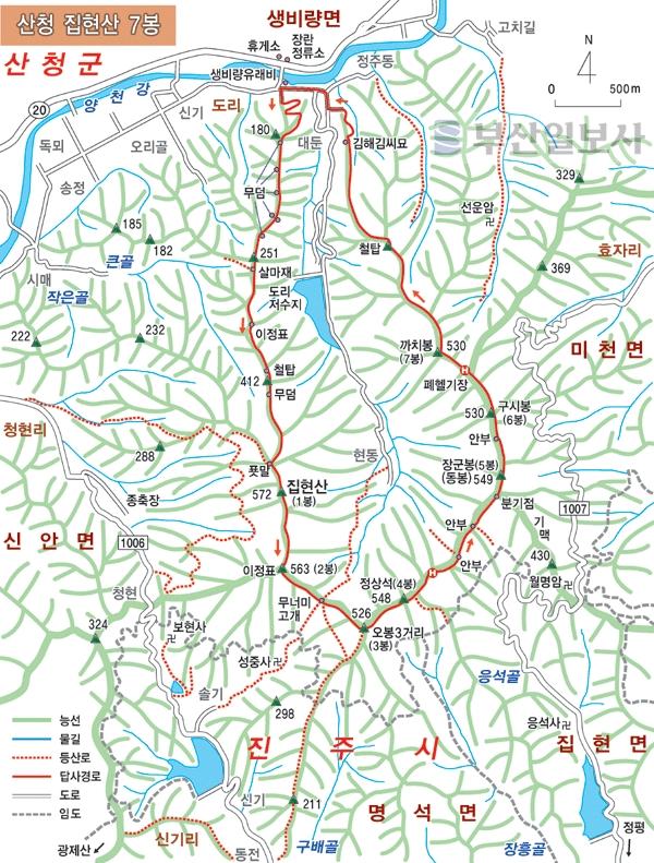 [산&산] <211> 산청 집현산 7봉 산행지도