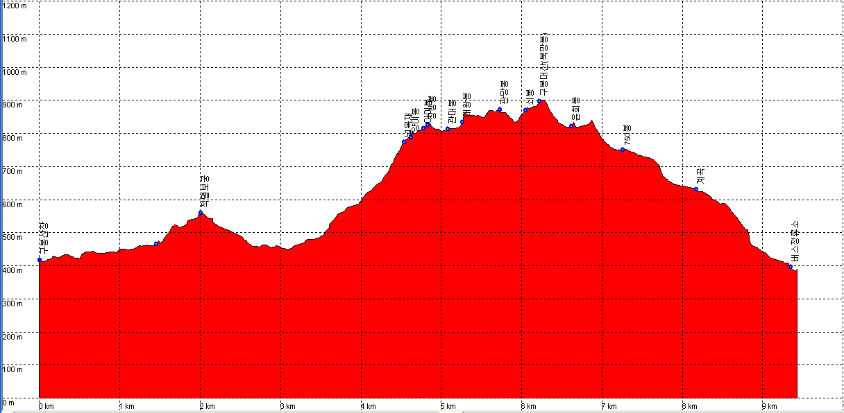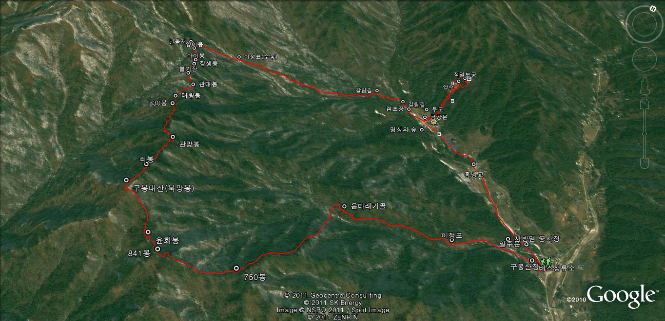 841봉을 지나면 고도가 점점 떨어진다. 750봉에서 능선 왼쪽 사면으로 10여 분 내려가면 음다래기골이다. 물길을 따라 15분 남짓 더 가면 시멘트 다리가 보인다. 여기서 길은 두 갈래인데 왼쪽은 사방댐 공사장, 오른쪽이 기점 방향이다. 여기서 구봉산장까지는 7~8분 정도. 산행문의 : 라이프레저부 051-461-4164. 전준배 산행대장 010-8803-8848.