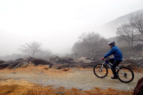 페달을 천천히 저어 만어사 아침 운해 속을 거닌다. 딩딩딩! 자전거 옆으로 보이는 어산불영 만어석에서 은은한 종소리가 들리는 것 같다. 그 옛날, 정말로 물고기가 돌로 변했을까?경남 창원 마산합포구 구산면의 해안길을 돈 자전거는 밀양으로 들어왔다. 이곳은 산과 물이 여유롭게 어울린 땅이다. 영남알프스의 최고봉인 가지산에서 불거진 운문지맥이 북을 막고, 서쪽으로 화악산~종남산 산줄기가 담을 쌓고 있다. 동쪽으로는 영남알프스가, 남쪽으로 영축지맥이 울타리를 쳤다. 그 둘레 가운데로 밀양강이 심장의 동맥처럼 흐른다. 국토지리정보원의 지도를 들고 자전거를 굴릴 만한 데를 추려 대여섯 곳을 뽑았다. 후보지를 밀양의 산악자전거(MTB) 동호회에 문의했더니 산악 코스로는 종남산, 만어산, 금오산 일대를, 평지로는 상동역과 밀양강 주변을 추천했다.