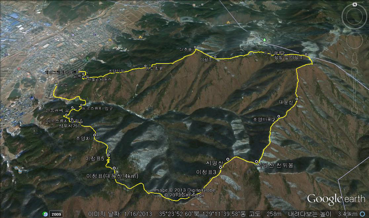 | ▲ 대운산 구글 어스 (※ 사진을 클릭하면 더 크게 볼 수 있습니다.) |
