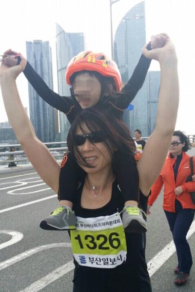 지난해 부산바다하프마라톤 대회에 참가한 김미애 변호사와 마음으로 낳은 딸 연아(가명)가 함께 환호하고 있다. 김미애 제공"엄마, 우리도 아빠 '키우면' 안 돼?" 우리 나이로 치면 여섯 살, 이제 겨우 네 돌 지난 아이가 검은 눈동자를 굴리면서 이 말을 하는데 정말 가슴이 미어지는 줄 알았단다. '아이를 위해서라도 결혼을 해야 하나?'라는 생각이 들 정도였다니 그 상황이 미루어 짐작됐다. '자발적 선택'의 미혼 싱글맘 김미애(47) 변호사 이야기다. 그의 이야기를 듣는 동안 '아이 한 명을 키우는데 온 마을이 필요하다'는 말의 의미가 저절로 이해됐다. 김 변호사가 어렵게 털어놓은 이야기를 통해 생명 있는 한 아이를 돌본다는 것의 어려움, 그리고 현 입양 제도가 안고 있는 문제점과 개선점을 알아봤다.