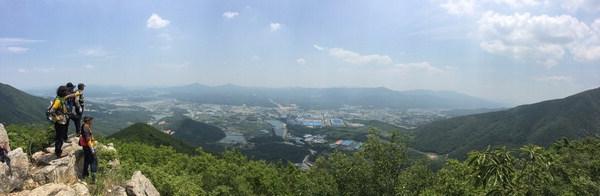 제법 올라왔다. 도드라지게 솟은 바위에 서니 아래가 잘 보인다. 삼성의 이병철 전 회장이 터를 잡을 때 삼남들판이 풍요로운 길지라서 풍수에게 보이고 공장을 지었다는 말이 있다. 산과 들, 내가 어우러진 들판에 국도 35호선이 지나간다. 신의주까지 이어지는 길이다.