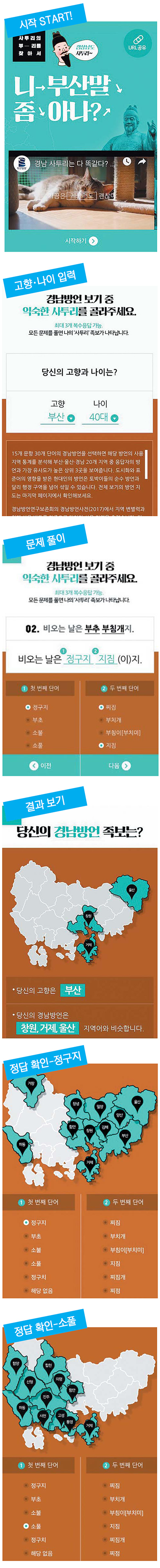 자신의 ‘부울경 방언 족보’를 확인하고 나면 경남방언 사전을 토대로 모든 방언의 사용 지역을 인터랙티브 지도로 확인할 수 있다. 그러나 이 콘텐츠의 목적은 ‘정답 찾기’가 아니다. 일상 언어 생활에서 섞이고 변화한 내 방언의 현주소를 확인하고 그 과정에서 사라져가는 사투리의 개성을 재발견하는 것이다.