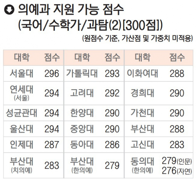 부산시교육청 진학지원단 김형길 프로그램 팀장은 "서울지역 대학에 응시할 때 유의해야 할 점은 이번 수능이 상위권에서는 크게 어렵지 않아 작년보다 원점수가 떨어지지 않았다는 점"이라며 "인문사회 계열에서 서울대와 연세대, 고려대에 지원할 땐 원점수 1~2점, 자연이공 계열에서 의예과에 지원할 땐 원점수를 작년보다 최소 5점은 더 여유를 둬야할 것"이라고 말했다.