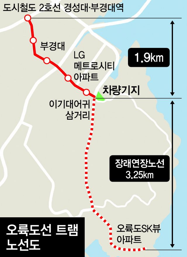 한편 부산 남구는 저상트램 노선 주변을 관광자원으로 개발하기 위해 타당성 조사와 기본계획 수립 용역을 착수했다. 남구는 오륙도선 주변 2000~5000㎡ 공간에 조경시설, 휴게공간, 트램 체험시설 등을 조성할 예정이다.