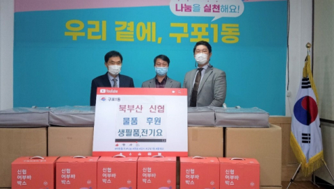 이날 북부산신협 수정본점에서 후원한 성품은 전기매트 45개와 생필품으로 구성된 어부바박스 12세트로 관내 독거가구 등 저소득 취약계층 57세대에 전달될 예정이다.