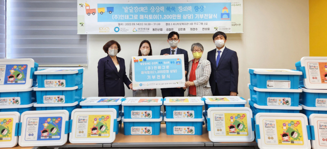 인제대학교(전민현 총장) 교원창업기업 인테그로(대표 김향숙 교수, 인제대 AI융합대학)는 14일 발달장애인전문복지관인 시나브로복지관에 1,200만 상당 창의력 향상교구를 기증했다.