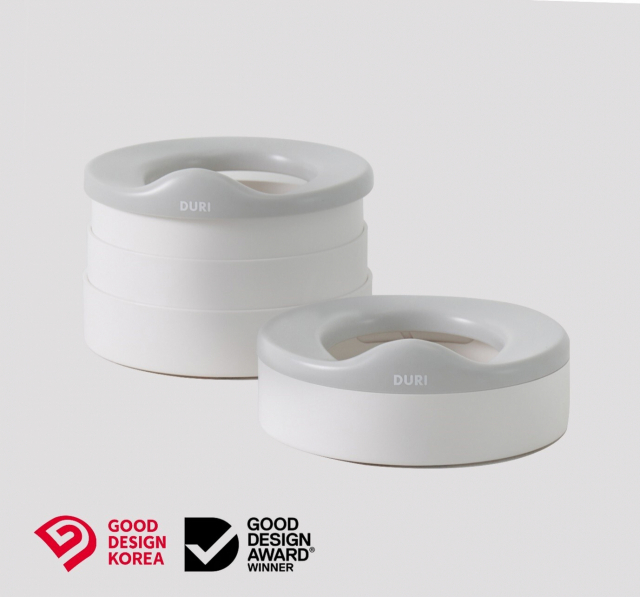 올해 어워드에서 두리가 수상한 굿디자인 상품은 도넛 모양의 휴대용 유아 변기다. 기존의 휴대용 변기는 큰 부피와 불편한 안착감으로 아이가 사용하기에 다소 어려움이 있었다. 이런 문제를 해결한 두리 휴대용 변기는 도넛형 폴딩 구조 채택으로 제품의 부피를 1/3로 줄여 외출 시에도 휴대가 간편한 혁신 제품이다. 또한 아이 엉덩이를 배려한 인체공학적 디자인과 배변 봉지가 살에 직접 닿지 않는 구조 설계로 편리하고 위생적인 사용이 가능하다.
