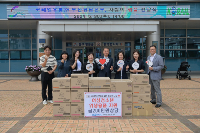 코레일유통(주) 부산경남본부(본부장 차관학)는 지난달 30일 세계 월경의 날을 맞아 부산 동구(구청장 김진홍)에 여성위생용품(환가액 200만 원 상당)을 기탁했다.