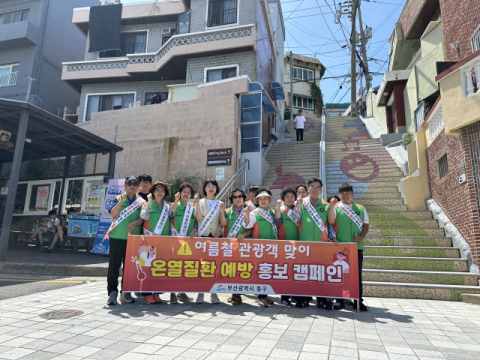 부산 동구(구청장 김진홍) 초량1동은 지난 11일 관광객들이 많이 찾는 168계단 일대에서 자율방재단과 함께 더운 여름철을 맞아 폭염 대비 온열질환 예방 홍보 캠페인을 진행했다.
