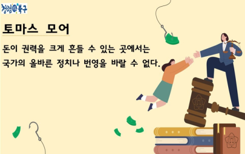 이번 캠페인은 영국의 사상가 토마스 모어의 “돈이 권력을 크게 흔들 수 있는 곳에서는 국가의 올바른 정치나 번영을 바랄 수 없다”는 명언을 인용해 행정복지센터 내 청렴 게시판과 사무실 공간에 게시하는 방식으로 진행된다. 이를 통해 직원은 물론 방문하는 민원인들도 청렴의 가치를 다시 한 번 되새길 수 있도록 기획됐다.