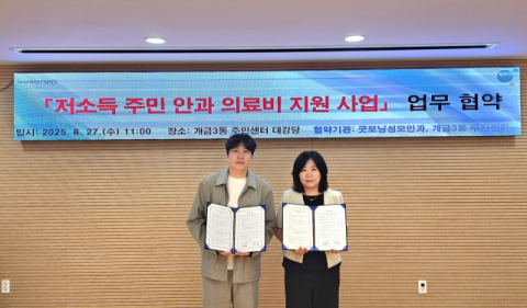부산진구 개금3동(동장 김명희)은 27일 굿모닝성모안과(대표원장 박진용)와 저소득 주민 안과 의료비 지원을 위한 업무협약을 체결했다고 밝혔다.