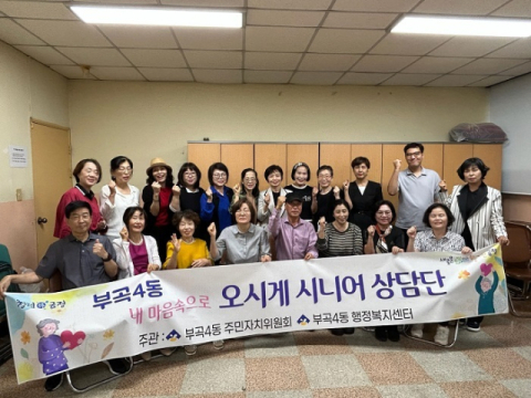 부산 금정구 부곡4동 행정복지센터는 지난 23일 ‘내 마음속으로 오시게 시니어 상담단’ 발대식을 개최하고, 관내 경로당 4곳을 대상으로 자원봉사 활동을 시작했다고 밝혔다.