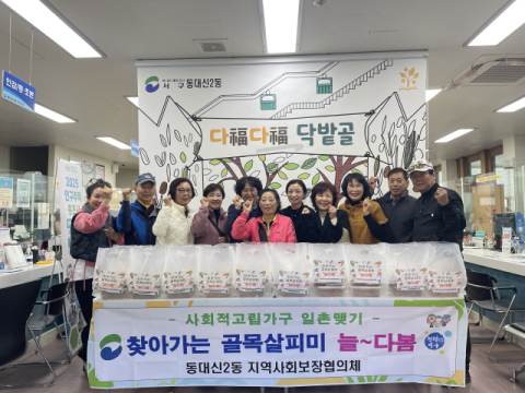 부산 서구 동대신2동 지역사회보장협의체(위원장 최환하)는 27일 복지통장(골목살피미)과 함께 사회적 고립 가구의 고독사 예방을 위한 ‘찾아가는 골목살피미 늘~다봄 사업’을 운영했다고 밝혔다.