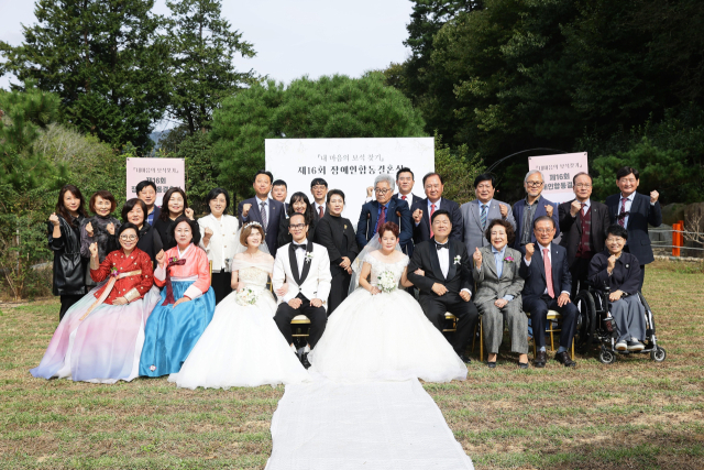 부산장애인총연합회(회장 조창용·결혼후원회장 팽경숙) 결혼상담소는 30일 금정구 체육공원로298번길 42에 있는 야외결혼식장에서 ‘내 마음의 보석찾기-제16회 합동결혼식’을 열었다.