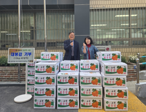 부산 서구 충무동 박홍일(부산자동차직업학교 대표)은 5일 가을을 맞아 대봉감 10kg 40상자를 관내 어려운 이웃에게 전달했다고 밝혔다.