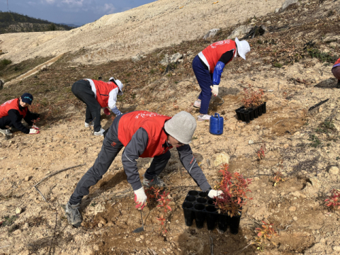 자원봉사자들은 이날 오전부터 별파랑공원 일대에 진달래 묘목을 심어 훼손 산림 복원과 지역의 자연경관 되살리기에 구슬땀을 흘렸다.