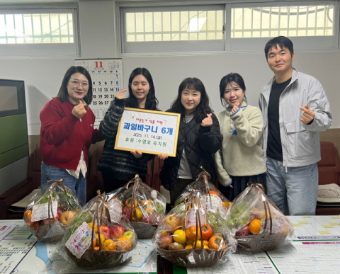 부산 수영구 수영동행정복지센터(동장 강두리)는 14일 수영로 유치원에서 추수감사절을 맞이해 관내 암환자 홀로 어르신 6명에게 정성스럽게 준비한 과일바구니를 전달했다고 밝혔다.