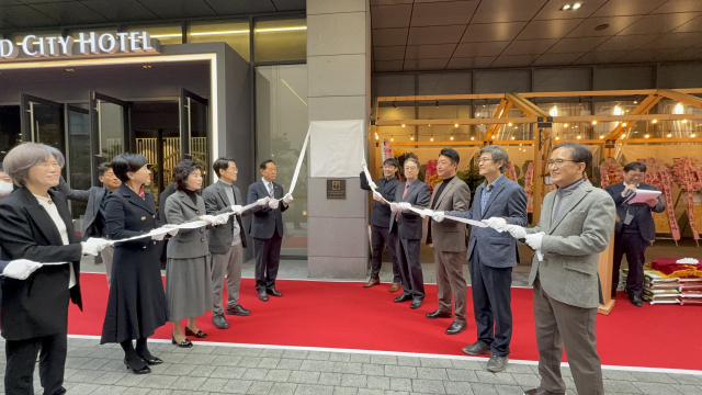 경남 창원시 성산구 특급 비즈니스 호텔인 ‘그랜드시티호텔 창원’(운영사 그랜드시티오퍼레이션즈)이 지난 1일 현판 제막식을 가졌다. 이날 행사에서 받은 쌀은 지역 복지기관에 전달될 예정이다.