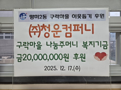 이은희 망미2동장은 “오랜 기간 지속적으로 지역의 어려운 이웃을 위해 따뜻한 온정을 전해주고 계시는 ㈜청운컴퍼니 대표님께 감사드린다”며 “도움이 꼭 필요한 분들에게 마음이 전달될 수 있도록 최선의 노력을 다하겠다”고 말했다.