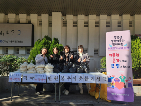 부산 중구 대청동복병산행복마을주민협의회(회장 조재숙)와 복병산 행복마을 자원봉사캠프에서는 지난해 12월 30일 연말연시 불우이웃돕기 성금 모금 마련을 위해 떡국떡 판매행사를 가졌다고 밝혔다.