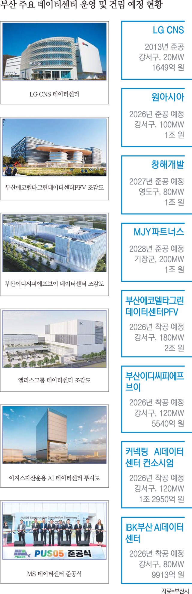 부산에 데이터센터를 짓거나 짓기로 한 누적 투자 규모도 기하급수적으로 늘어 현재 12조 7000억 원에 이른다. 부산에 데이터센터를 운영 중이거나, 투자를 확약한 기업은 모두 15개 사로 국내 대기업은 물론 해외 기업들도 포함된다.