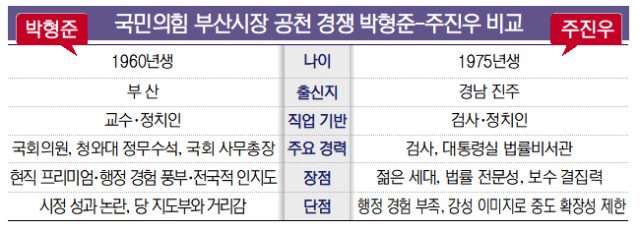 부산 국민의힘 관계자는 “정치 경험이나 성향에서 이질적인 두 사람의 대결이 양측의 약점을 보완하는 예방주사가 될지, 오히려 이를 부각하면서 본선 경쟁력을 훼손하는 악수가 될지 가늠하기 어렵다”고 말했다.