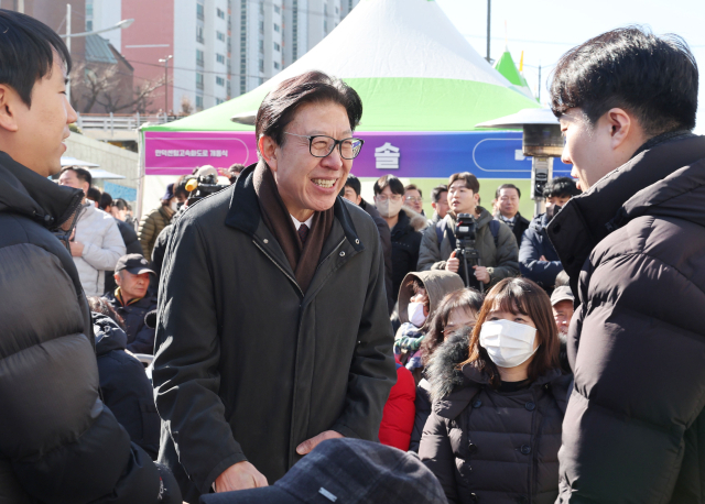 국민의힘 부산시장 후보 경선 레이스가 시작되면서 판세를 좌우할 여러 변수들이 부각되고 있다. 지난달 ‘만덕~센텀 도시고속화도로 개통식’에서 시민들과 인사를 나누는 박형준 부산시장(위)과 지난 9일 부산시의회에서 출마 선언을 한 뒤 기자회견장을 나서는 주진우 의원. 이재찬·정종회 기자 chan@