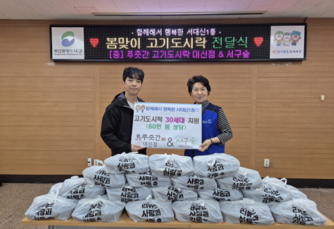 부산 서구 서대신1동 지역사회보장협의체(위원장 이복례)는 22일 푸줏간 고기도시락 대신점(대표 현승우)과 서구숲 마을교육공동체로부터 60만 원 상당의 고기도시락을 후원받아 관내 주거취약시설인 고시원 등 사회적 고립가구 30세대에 직접 전달하고, 찾아가는 복지상담을 통해 다양한 사업들을 안내했다.