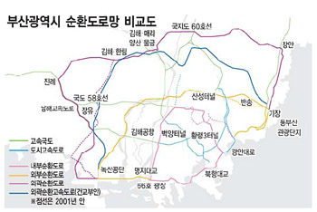 재정비안은 현재 건설교통부가 타당성 검토를 하고 있는 녹산공단 송정IC~김해시 상동면~김해시 동면~기장군 기장읍을 연결하는 '외곽순환고속도로'를 추가 반영,부산시 순환도로망은 종전 3개축 234.5㎞에서 4개축 283.65㎞로 49.15㎞ 늘어나게 됐다.
