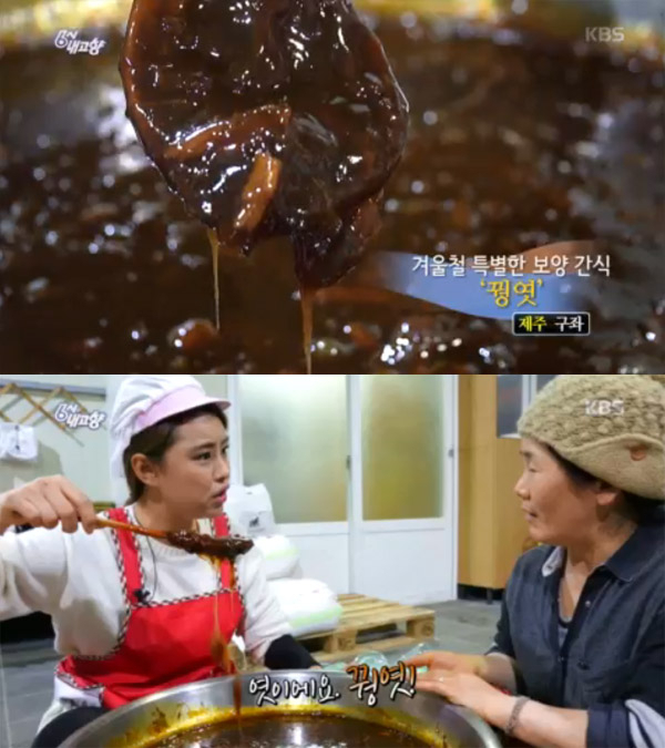 이날 소개된 제주시 구좌읍 덕천리 부녀회에서는 겨울에 일거리가 없는 여유시간을 활용해 제주 전통 보양식 '꿩엿'을 만들어오고 있다. 쌀이 귀하던 시절에는 차조를 대신 사용했고, 꿩 삶은 물에 찹쌀밥을 짓는 동안에도 계속 수시로 저어주고, 6시간의 발효를 거치며 복잡한 과정을 거치지만 전통방식을 고집한다.