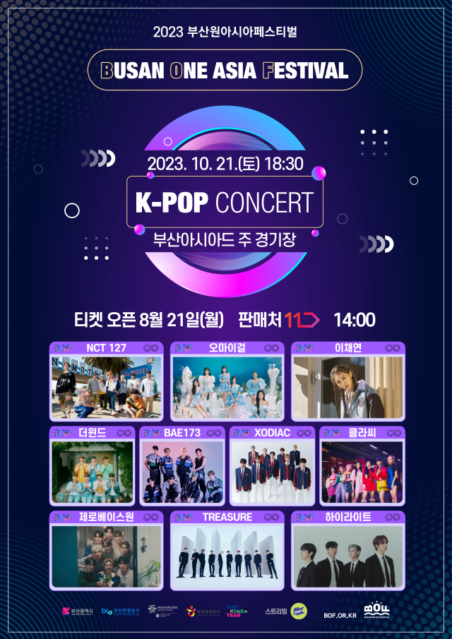 대한민국을 대표하는 한류문화관광 축제인 2023 부산원아시아페스티벌 (Busan One Asia Festival, 이하 BOF) K-POP 콘서트 최종 라인업이 공개됐다.
