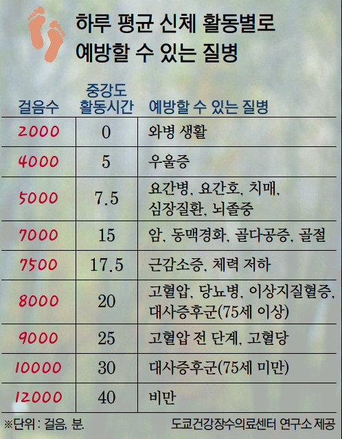 잘 알려진 1만 보 걷기도 필요 없다는 것이 아보 교수의 지적이다. 장노년층이 ‘운동을 통한 중력 자극’으로 골절을 예방하기 위해서는 하루 8000보 정도의 걷기와 같은 운동이면 충분할 수 있다는 것이다.