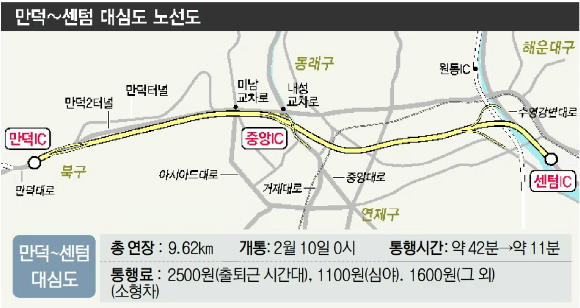 부산 지역 첫 대심도 도로인 ‘만덕∼센텀 고속화도로’가 다음 달 10일 개통된다.