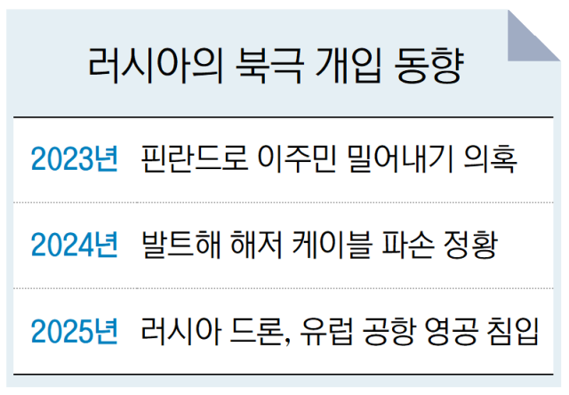 우르마스 파에트 유럽의회 외교위원회 부위원장은 러시아가 북극 내 영향력 강화를 위해 유럽 전체를 상대로 군사, 비군사적 전략이 결합된 ‘하이브리드’ 전쟁을 벌이고 있다고 분석했다. 그는 “사실 러시아의 우크라이나 침공은 이미 2014년에 시작했다. 당시 러시아는 북극 군사 역량에 막대한 투자를 하고 있었으나 서방 국가들은 평화로운 북극이라는 관념에 기대어 이를 심각하게 받아들이지 않았다”고 말했다. 그는 “러시아는 북극 내 영향력을 확대하기 위해 핀란드로 이주민을 밀어내고, 발트해를 지나는 해저 통신 케이블을 절단한 의혹을 받고 있다. 유럽 내 공항에 대한 방해 공작 등도 그 예이다”고 말했다. 앞서 2023년 핀란드는 러시아와의 국경을 차단했는데, 핀란드는 유럽연합(EU)과 북대서양조약기구(NATO) 회원국 관문 역할을 하는 핀란드를 불안정하게 만들기 위해 러시아가 이주민을 일부러 밀어낸다는 의혹을 제기한 바 있다.