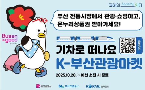 부산관광공사 관계자는 “철도와 전통시장을 연계한 상품을 통해 지역 상권에 활력을 불어넣고, 관광소비 선순환을 확대하겠다”며 “앞으로도 유관기관과 협력해 지역 상권과 관광을 연계한 다양한 상생형 관광상품을 개발해 나가겠다”고 밝혔다.