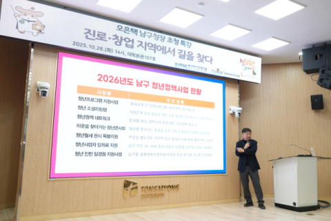 동명대 RISE사업단(단장 이응주)은 지난 28일 대학본관에서 ‘진로·창업 지역에서 길을 찾다’를 주제로 오은택 부산 남구청장 초청특강을 개최했다고 밝혔다.