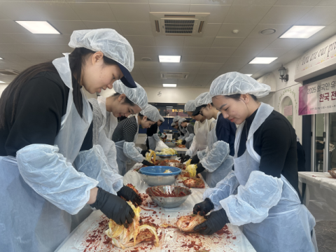 이날 행사에는 어학연수생 31명과 학부생 3명을 포함한 외국인 유학생 34명과 전문 강사 3명 등 총 37명이 참여했으며, 김치의 역사와 개념, 효능과 종류에 대한 이론 교육을 시작으로 배추김치 양념 만들기 및 김치 담그기 실습, 보관 방법 안내까지 체계적으로 진행됐다. 특히 함께 만든 김치를 시식하며 유학생 간 자연스러운 교류의 시간도 마련돼 큰 호응을 얻었다.