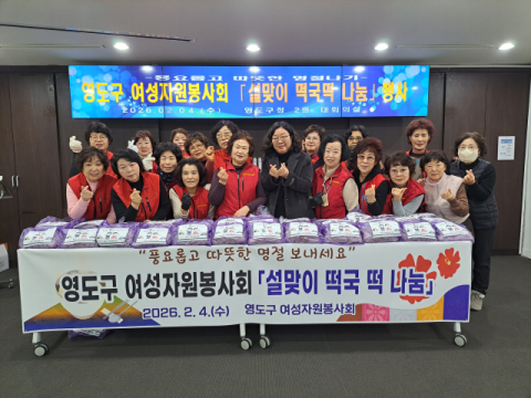 영도구 여성자원봉사회(회장 이춘희)는 지난 4일 민족의 명절 설을 맞아 관내 저소득 홀로 어르신 70여 명을 대상으로 떡국떡 나눔 행사를 가졌다고 전했다.