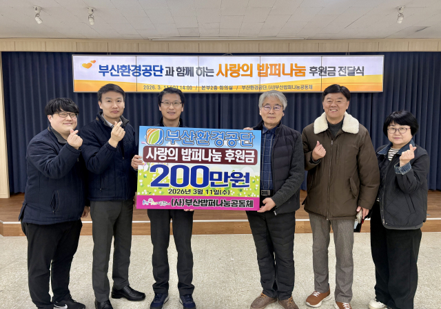 부산환경공단(이사장 이근희)은 지역사회 취약계층을 위한 나눔 경영을 실천하고자 (사)부산밥퍼나눔공동체에 무료급식 지원을 위한 후원금 200만 원을 전달했다고 11일 밝혔다.