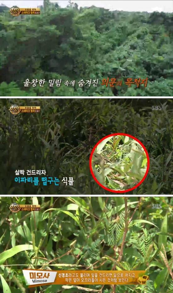 이 가운데 김병만은 "건드려봐 이거 건드리면 죽는척 하는 풀"이라고 말해 궁금증을 자아냈다.
