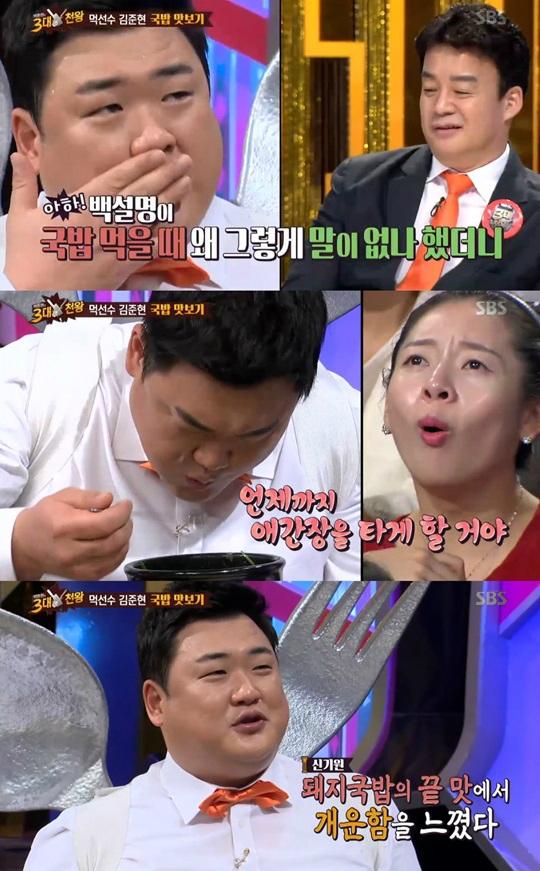 [비에스투데이 유은영 기자] '먹선수' 김준현이 SBS 예능프로그램 '백종원의 3대 천왕'에서 밀양의 국밥을 맛보고 개운하다고 평했다.