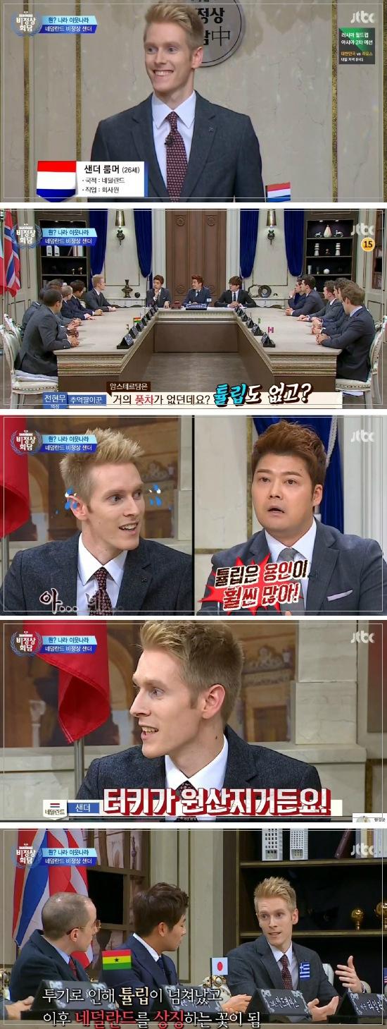 [비에스투데이 김정덕 객원기자] 16일 방송된 JTBC '비정상회담'에는 네덜란드 대표인 샌더가 출연, 네덜란드에 대한 문화와 생활에 대해 소개했다.