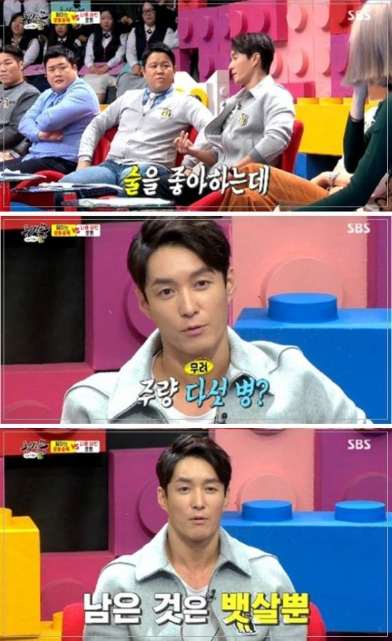 MC 김구라는 "이 친구 술을 정말 좋아한다. 단촐하게 라면에도 소주 먹는 친구다"라고 거들었다.