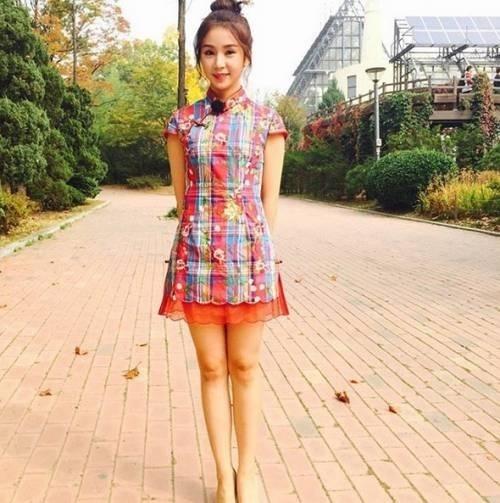 공개된 사진 속의 차오루는 화려한 체크무늬의 짧은 치파오를 입고 카메라를 바라보고 있다.