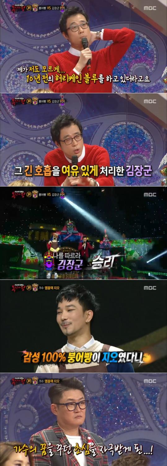 [비에스투데이 김상혁 기자] MBC '일밤-복면가왕'에서 김장군이 가왕에 도전하게 됐다. 그리고 붕어빵의 정체는 엠블랙의 지오였다.