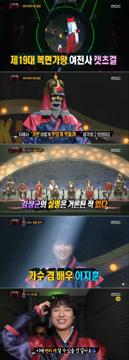 김장군의 정체 공개에 앞서 김성주는 "앞서 이 분의 이름은 한 번도 거론된 적 없다"고 말해 기대를 증폭시켰다. 이어 김장군의 가면 아래서는 이지훈의 모습이 드러나 모두에게 충격을 전했다.