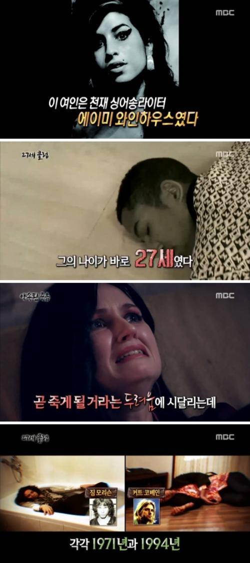 [비에스투데이 김두연 인턴기자] 27일 방송된 MBC '서프라이즈'에서는 천재 뮤지션들의 징크스 '27세 클럽의 저주'에 대한 내용이 그려졌다.