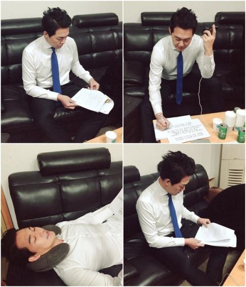 27일 박성웅의 소속사 씨제스엔터테인먼트는 공식 페이스북을 통해 대본에서 눈을 떼지 못하고 있는 박성웅의 모습이 담긴 사진을 게재했다.